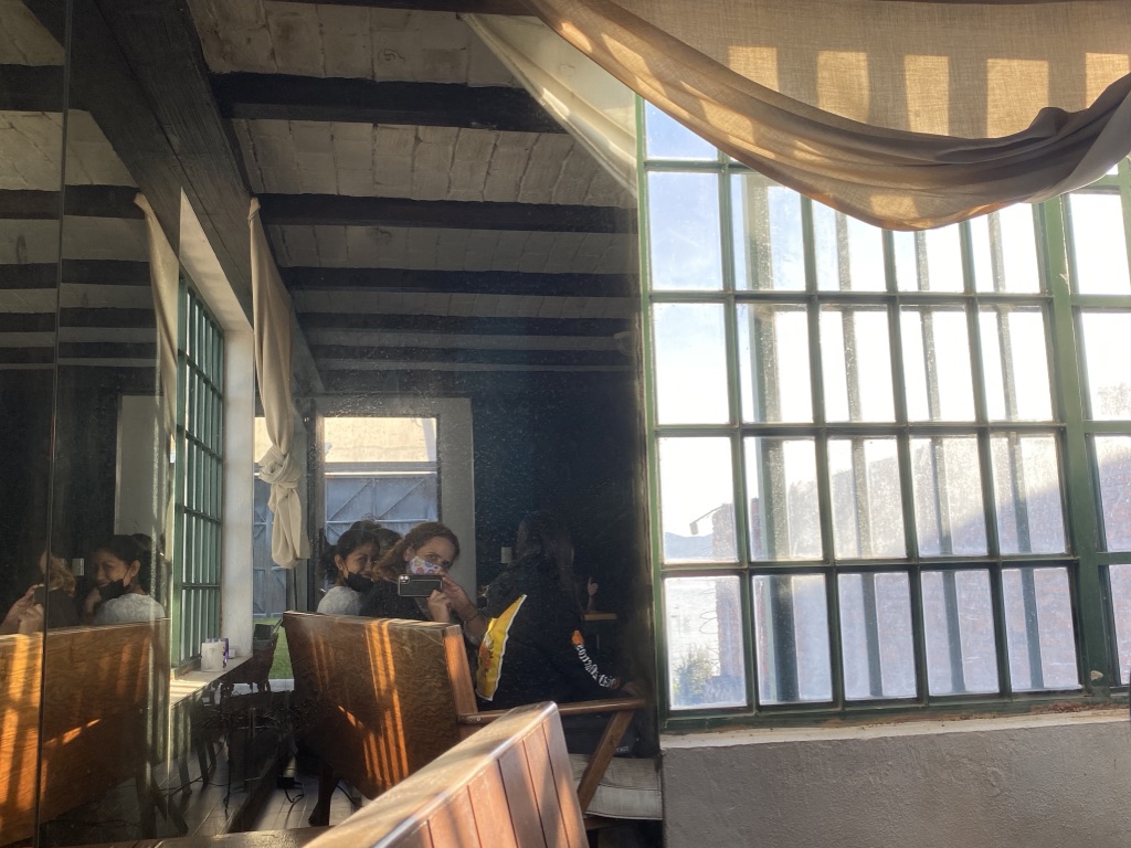 Y «en la tarde», sesión intensa de planificación con las mentoras de Pro México, precedida de una comida al aire libre con aportaciones de todas las asistentes, acompañada de un café con tortillitas verdes, requesón y otros dulces típicos mexicanos, y sucedida de un maravilloso atardecer del que os dejo testimonio fotográfico.